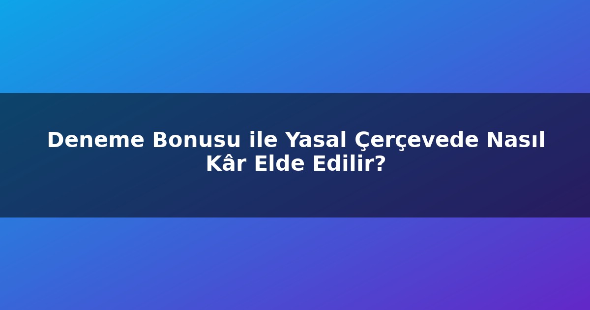 Deneme Bonusu ile Yasal Çerçevede Nasıl Kâr Elde Edilir?